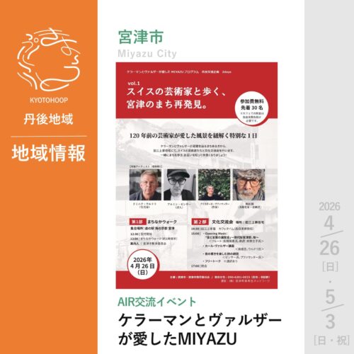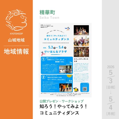 KYOTOHOOP(きょうとふーぷ)は、京都府域のヒトと場所、文化芸術と地域の輪を育む『京都府地域文化創造促進事業』の情報サイトです。地域文化を大切にしながら新しい文化も生まれ続ける。そんな有機的な地域社会が持続するよう、活力となる情報を皆様に発信してまいります。
