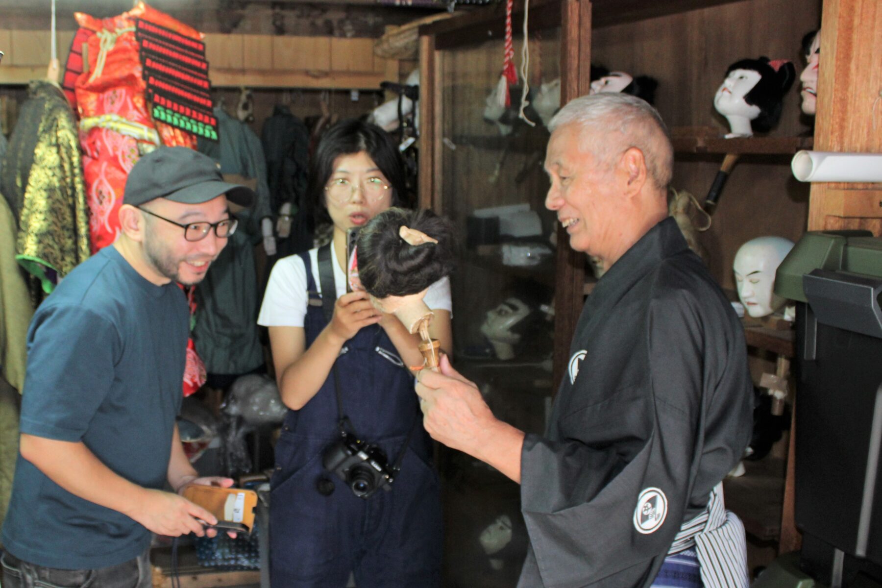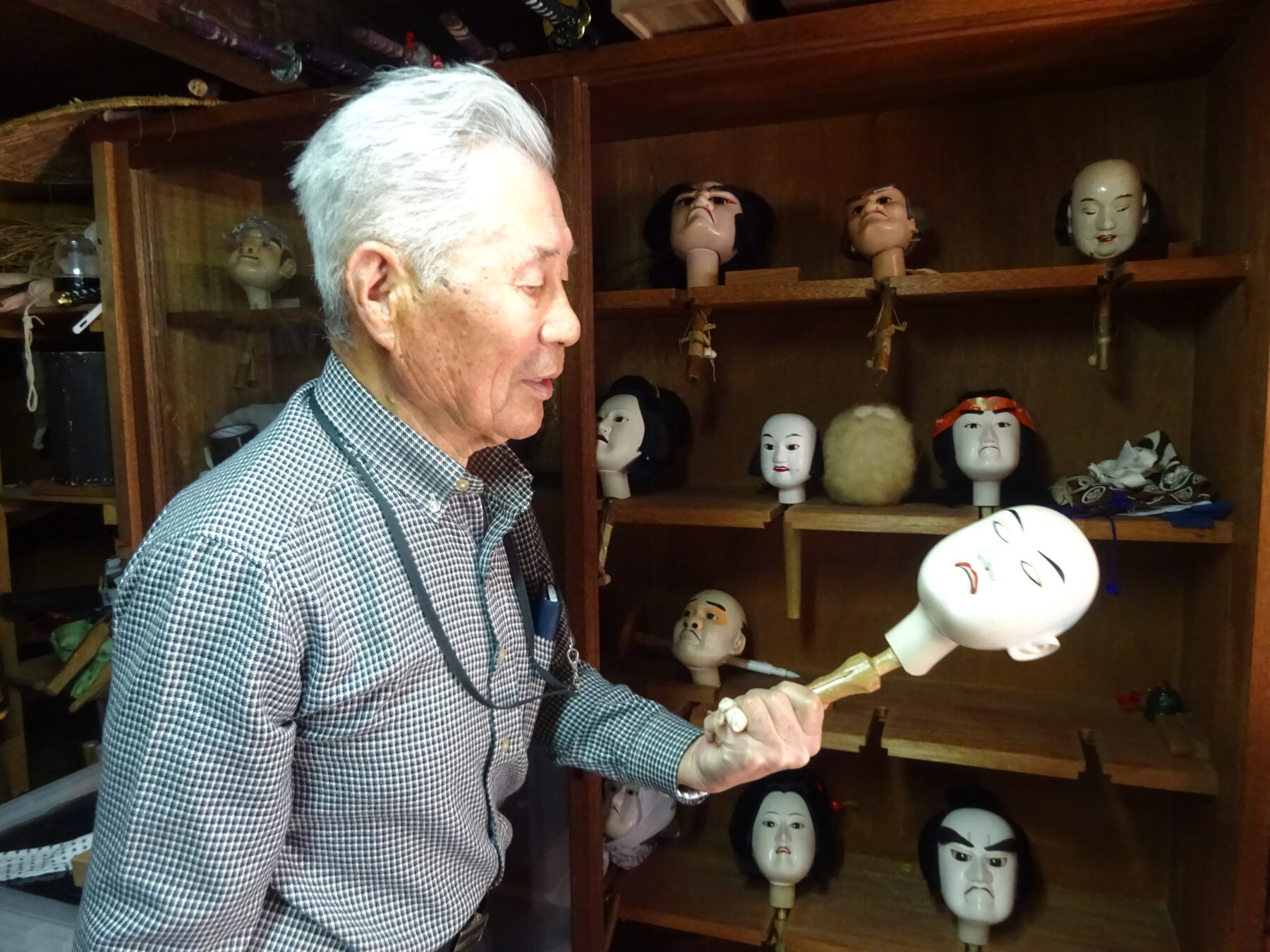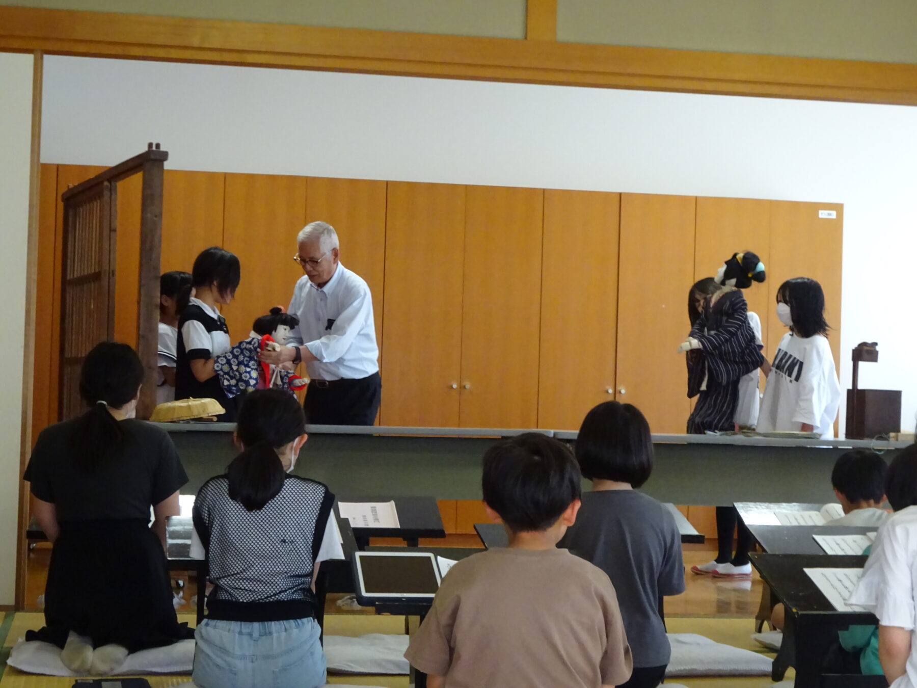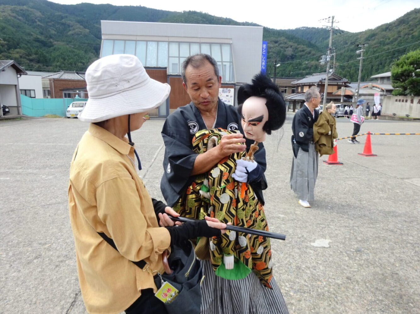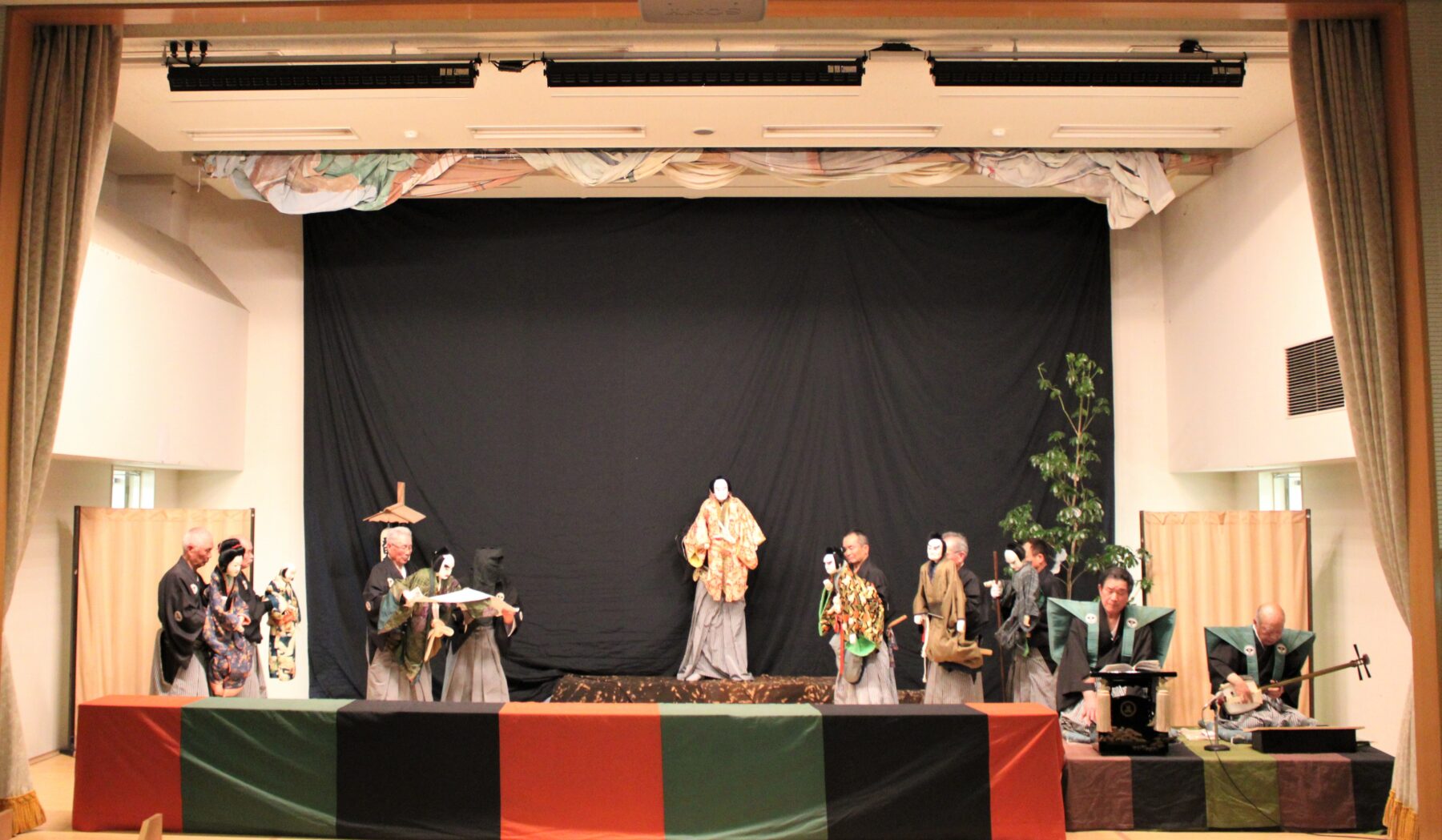 和知人形浄瑠璃は、江戸時代末期に大迫(おおさこ)村(京丹波町大迫)で農閑期の楽しみとして始まったとされ、おおぶりな人形を一人で操る「一人遣い」が特徴。