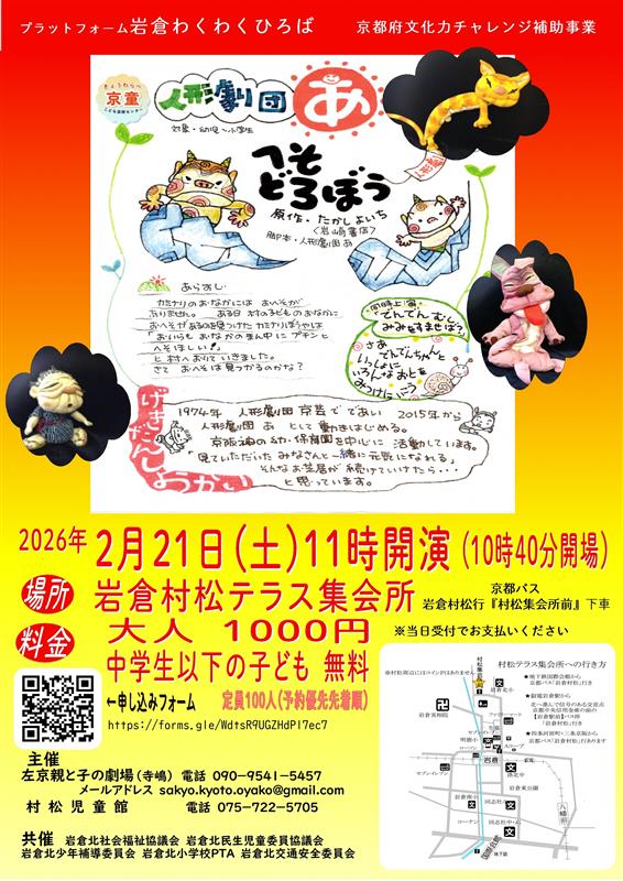 左京親と子の劇場・村松児童館による、令和7年度 京都府文化力チャレンジ補助事業の開催情報をお知らせいたします。