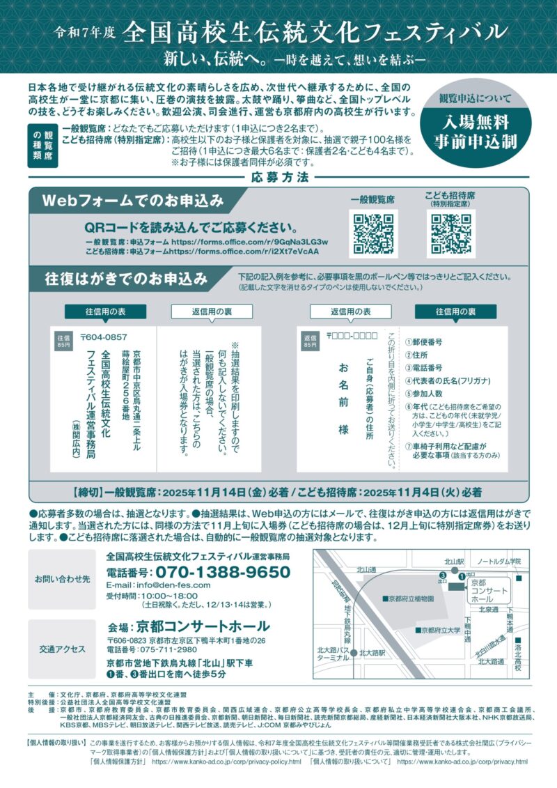 「令和7年度全国高校生伝統文化フェスティバル」公式ホームページ https://www.pref.kyoto.jp/denfes/index.html(外部リンク)