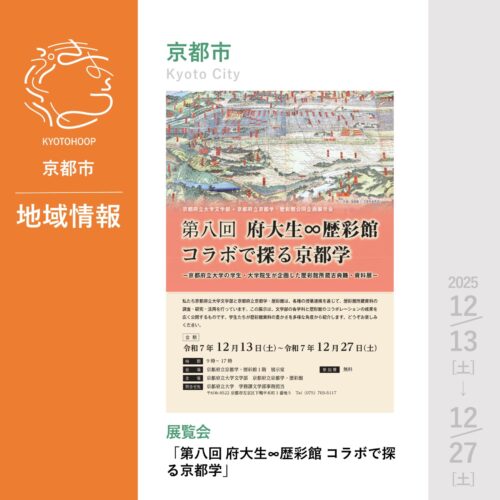 2025年11月13日(土)~12月27日(土)に、京都市で[展覧会]「第八回 府大生∞歴彩館 コラボで探る京都学」が 開催されます。