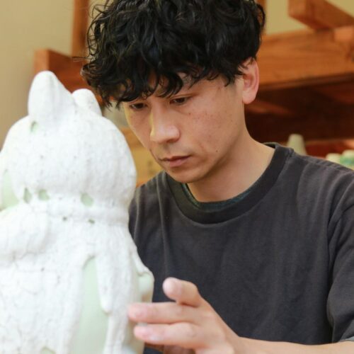 繊細な陶のオブジェを創るアーティストの西久松友花さん。彼女にとって、出身地の亀岡市での制作・発表にどのような意味があるのか、自身の作品と地域との繋がりについて伺いました。
