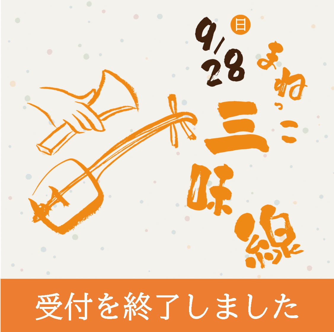 2025年9月28日(日)開催予定のワークショップ「まねっこ三味線」は、好評につき、定員に達したため受付を終了しました。