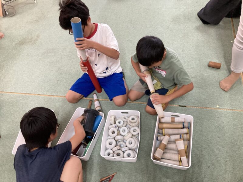 「たとえば、こうして紙管(しかん)は笛のようになるし、くだを擦るだけでリズムになる。失敗はないです。乱暴にすると乱暴な音になるし、心を込めてすると生きた音になる。ちがう素材やかたちのものと出会って、おもしろい音になります」