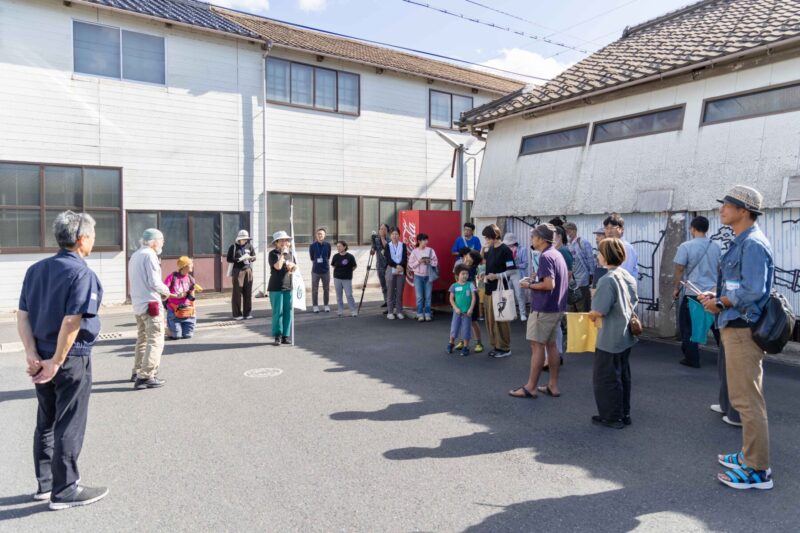この日は快晴で、しばらく続いていた雨がすっかりどこかに。秋の風とすこし淡くなった青空に、ちりめん生地の団旗がよく映えた。かつては機音の響きで町が揺れていたとも言われる迷路のような路地を歩き、うきうきしながら屋外 会場の砂浜へ。