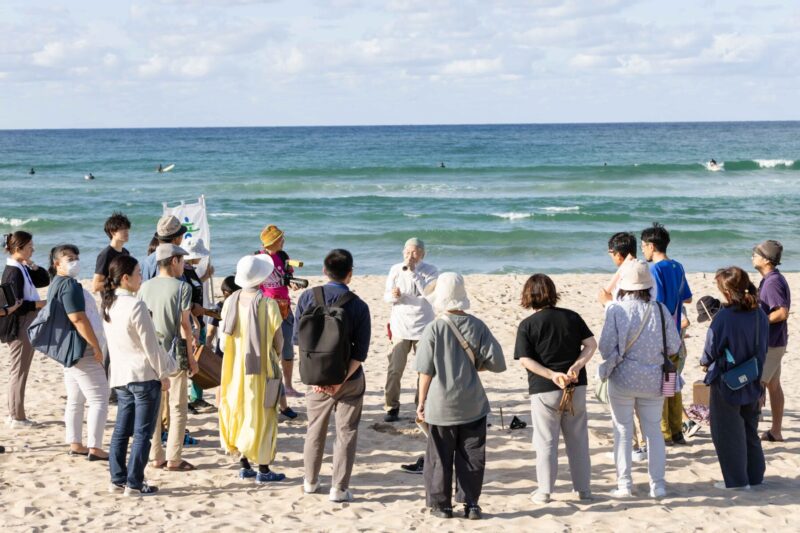 「わー、綺麗な海!」山間部からやってきた子どもたちの声が、白い砂浜に響く。昭男さんも、昭男さんのもとに集まる参加者も、みんな海がよく似合った。