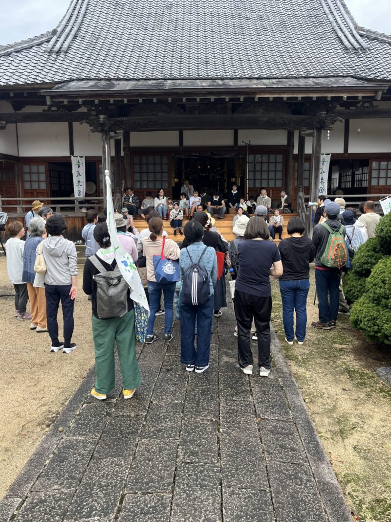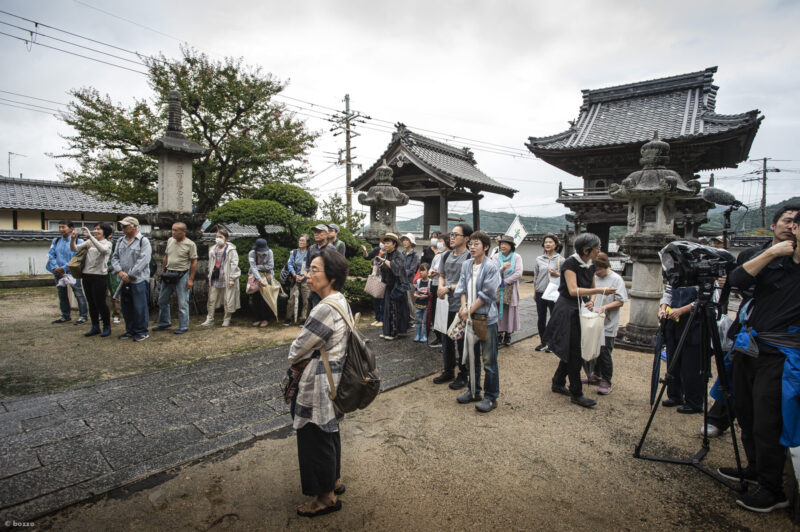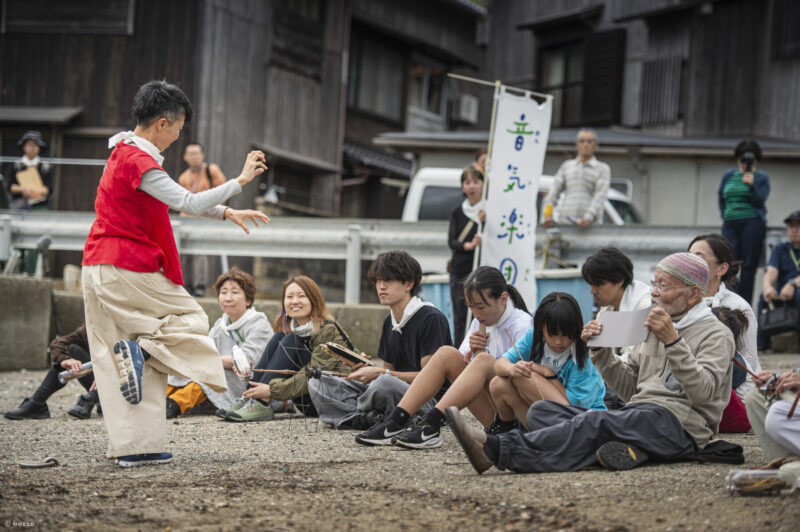 丹後内外から集まった22名の鑑賞バスツアー御一行と、ちりめん街道の近くに住む地域の人が続々と集まり、本番へ。雨が、ぴたりと止んだ。