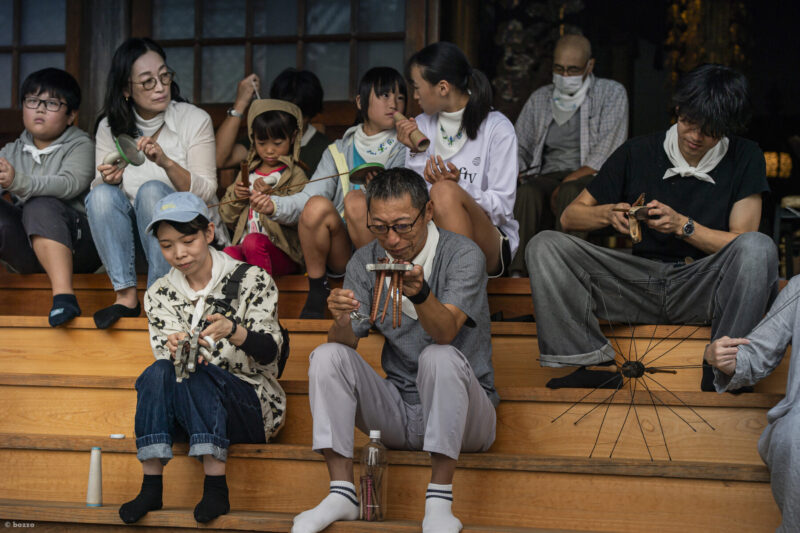 昭男さんの「かや!」「けーほ!」の掛け声で、音の種類ががらりと変わる。気になる音を奏でる機道具はどれなのか知りたくなって、つい目を凝らす。これだと気づくと嬉しい。目を閉じてみると、たくさんのリズムや音が自由になった個性として織りなす様が浮かんだ。