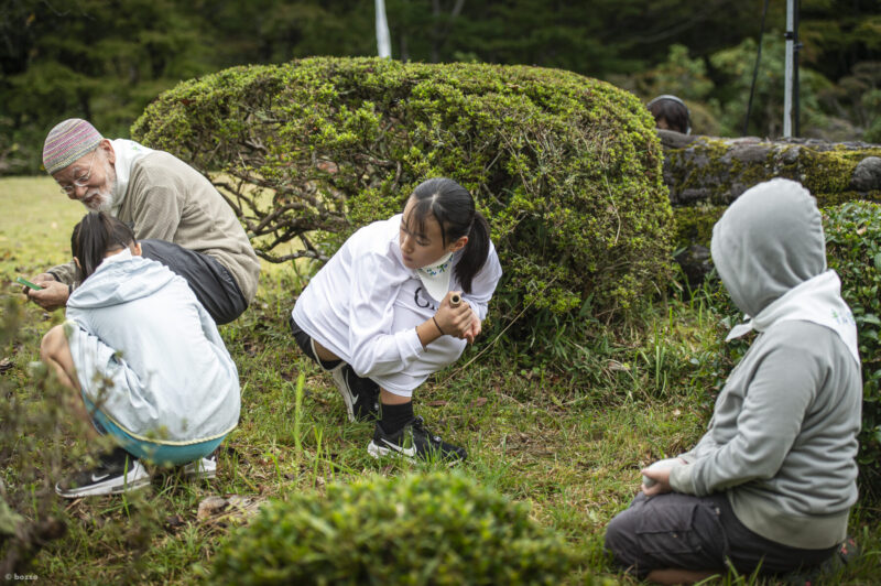 その後は観客も庭に出て、“虫たち”を探す。虫の音は、機道具を楽器として奏でていたことを目の当たりにして、興味津々だった。