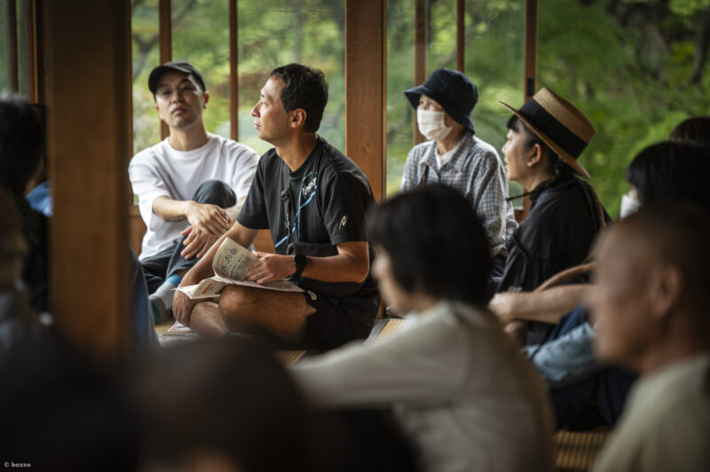 観客の話し声がピタリと消え、広間に静寂が広がる。全員の意識が庭の‟虫たち“へ集中すると、外の音が浮かび上がってくる感覚に包まれた。これが「きく」ことなのだ。