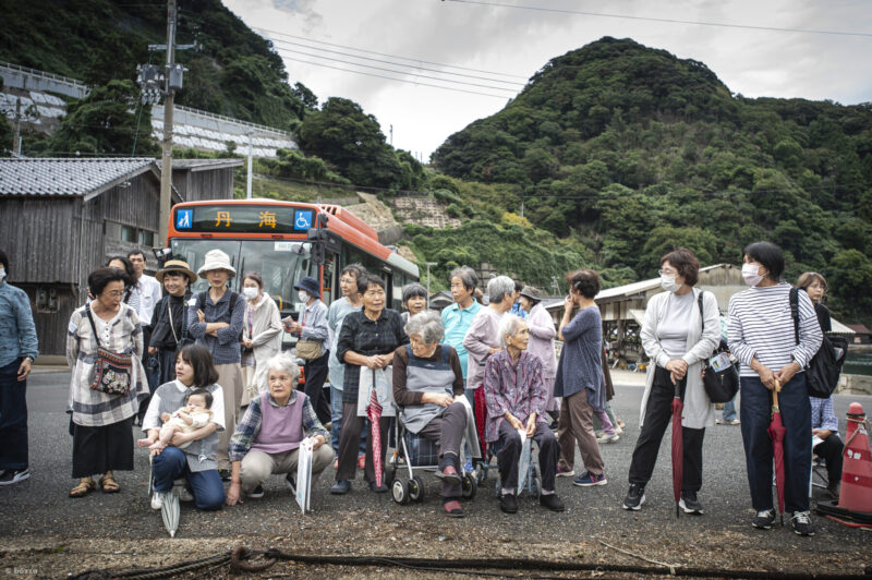 バスは丹後半島の最北端にある経ヶ岬を越えて、伊根町に入る。その最初の集落にある本庄漁港が伊根会場。有名な舟屋のエリアではなく日本海に面した漁村で、1965年(昭和40年)頃には蒲入漁協組合が運営する織物工場があり、漁業と織物業の両方で栄えてきた地域だ。