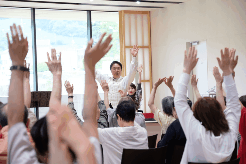 山城地域の最南部に位置する笠置町・和束町・南山城村(以下、相楽東部地域)を舞台に、2025年6月から7月にかけて実施した、“歌”で人と人がつながる「みんなで歌おう!合唱プロジェクト」。第一線で活躍するテノール歌手の竹内直紀氏、山城地域を拠点に活動するソプラノ歌手の東志奈氏を講師に迎え、気軽に参加できる「体験編」とコンサート出演に向けて合唱に取り組む「本編」の2種類のワークショップを開催し、本編参加者が「やましろミュージックキャンプ」(※)参加者とコンサートで共演しました。今回は体験編ワークショップのレポートをお届けします。