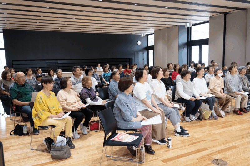合唱経験者も、普段はあまり歌う機会がない人も、誰もが気軽に集い、歌の楽しさを体感する機会として体験編ワークショップ(以下、体験編)を開催した。参加者がプロの声楽家である2人の講師の魅力に直接触れることや、「やましろミュージックキャンプ」参加者との共演に向けた本編ワークショップ(以下、本編)への参加を促すことを視野に入れ、体験編は合唱プロジェクト全体の入り口となるよう構想された。